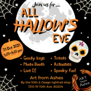 We’re welcoming all the groovy ghosts and goblins (up to age 24) to come get candy and swag bags at Art from Ashes this Halloween!