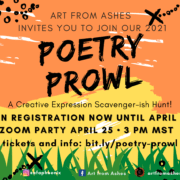The Prowl and the Party are online events, however prompts encourage discovery at home, and some involve visiting outdoor locations. Youth ages 12 – 24 who RSVP get a “ticket stub” by email to bring to our Wednesday poetry and spoken word workshop to receive a FREE writing kit.