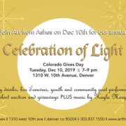And we hope you’ll come to our Annual Celebration of Light Party on Colorado Gives Day, Dec 4th from 7 to 9 pm at Art from Ashes, 1310 west 10th ave, denver